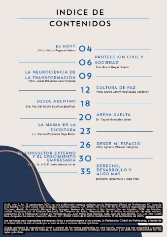 GoEL, año 2, No. 19, septiembre 2024, es una publicación mensual editada por la Federación Global de Profesiones AC, Juan de