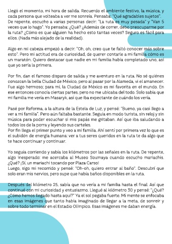 un maratón. Quiero destacar que nadie en mi familia había completado uno, así