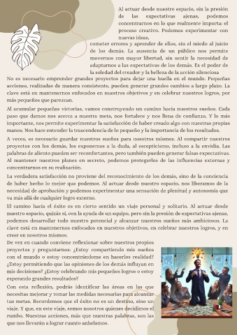 nuestro espacio, quizás sí, con la ayuda de un equipo, pero sin la presión de expectativas ajenas,