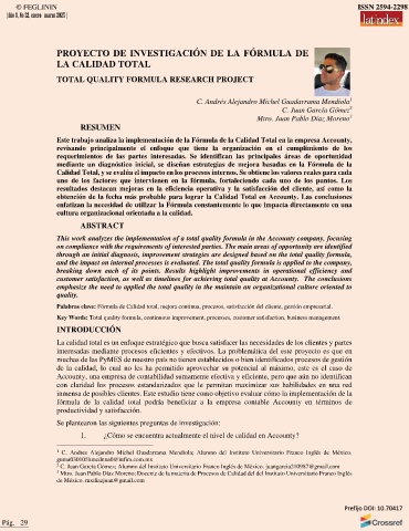 Este trabajo analiza la implementación de la Fórmula de la Calidad Total en la empresa Accounty,