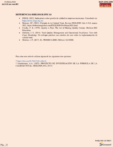 • Moreno, J.P. (2021). Fórmula de la Calidad Total, Revista FEGLININ Año 4 #16, marzo