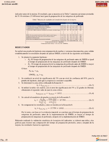 indicador antes de la mejora. El resultado, que se muestra en la Tabla 7, muestra un tiempo promedio