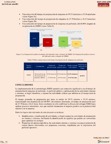 • Una reducción del tiempo de preparación de máquinas de 59.53 min/turno a 35.18 min/turno