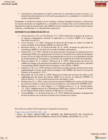 • Alarcón Sornoza, J. W., & Véliz Dorado, D. A. (2022). Reducción de tiempos de cambio en