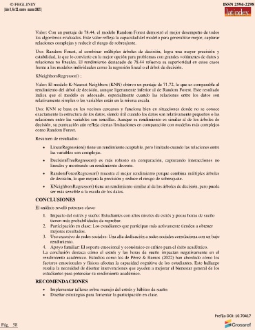 los algoritmos evaluados. Este valor refleja la capacidad del modelo para generalizar mejor, capturar