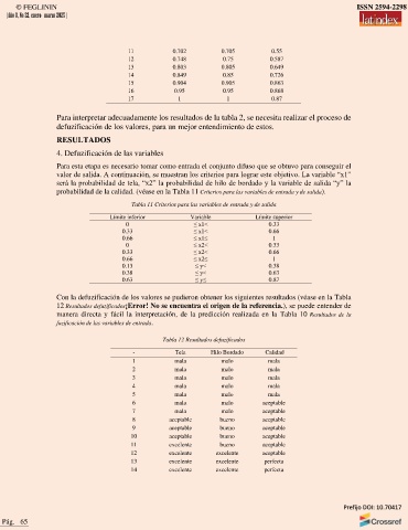 Con la defuzificación de los valores se pudieron obtener los siguientes resultados (véase en la Tabla