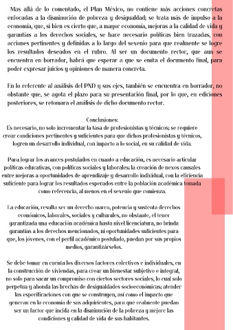 En lo referente al análisis del PND y sus ejes, también se encuentra en borrador, no