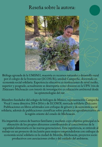 Ha impartido cursos de huertos familiares y escolares cuyo objetivo principal es la