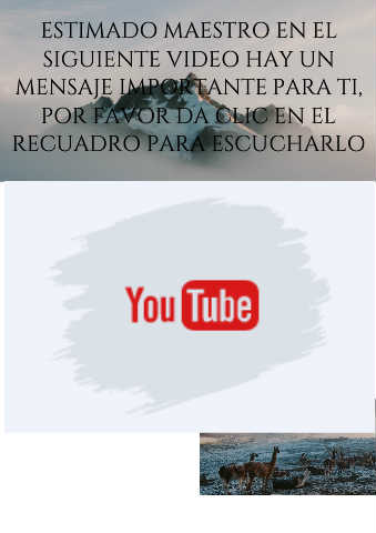 ESTIMADO MAESTRO EN EL SIGUIENTE VIDEO HAY UN MENSAJE IMPORTANTE PARA TI, POR FAVOR DA CLIC EN EL RECUADRO PARA ESCUCHARLO