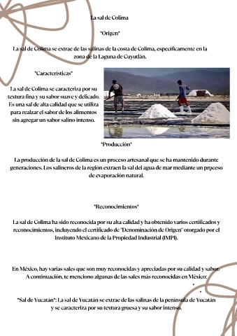 *Sal de Yucatán*: La sal de Yucatán se extrae de las salinas de la península de Yucatán