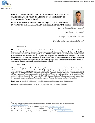Palabras clave: Gestión de calidad, ISO 9001:2015, Control estadístico de proceso, Área de ventas.