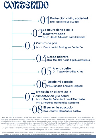 GoEL, año 3, No. 30, agosto 2025, es una publicación mensual editada por la Federación Global de Profesiones AC, Juan de Dios Bonilla, 11-c,