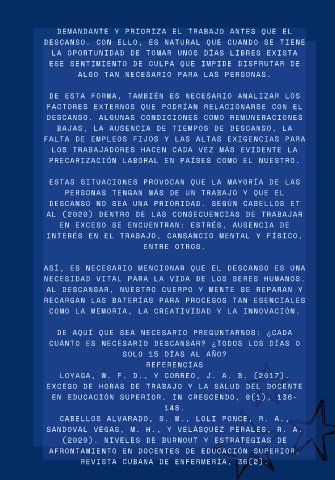 DESCANSO NO SEA UNA PRIORIDAD. SEGÚN CABELLOS ET