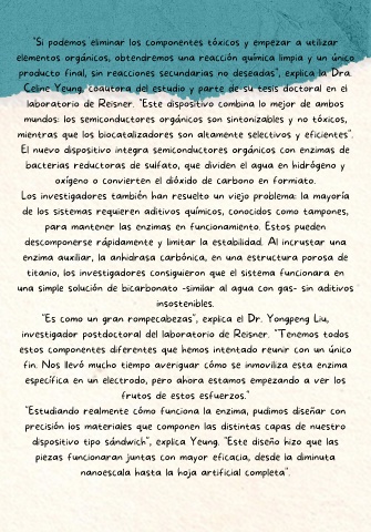 investigador postdoctoral del laboratorio de Reisner. "Tenemos todos