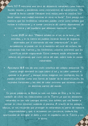 bíblicos, se nos recuerda que proteger la naturaleza es parte de nuestra