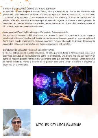 estrés. Más aún, estudios muestran que el ejercicio regular promueve la neurogénesis, la